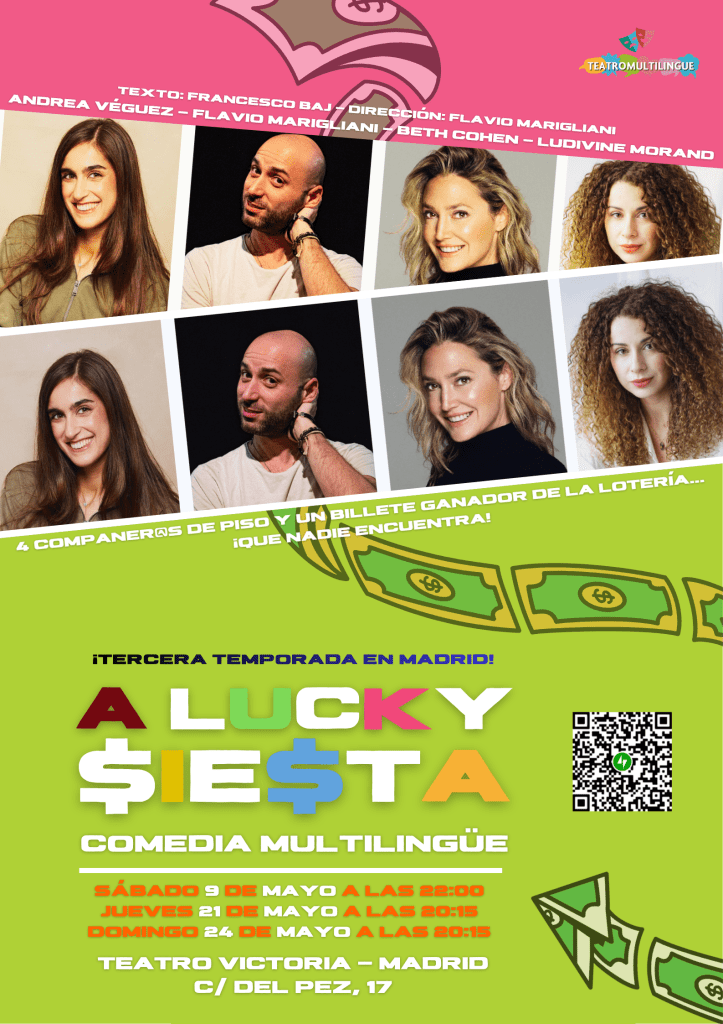 Después del super éxito que tuvo en las pasadas temporadas, esta comedia multilingüe única vuelve a Madrid! Obra escrita y actuada en español, English, français e italiano, pero no hace falta conocer o hablar todos los idiomas para seguir la historia.